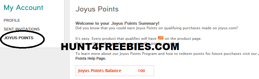 If by chance you are having trouble finding you “Joyus” points, go to your account and then click “joyus points’ and you will see 100 points, which is equal to $10. Here is an image example, just in case.