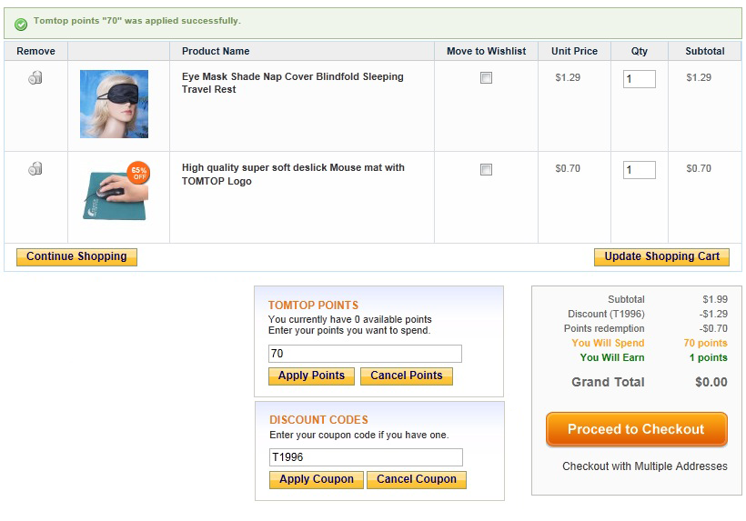 When you register you will get 70 points, you can add this Mouse Pad Here and apply your 70 points, making it FREE. During checkout under “payment” click “pay with points”