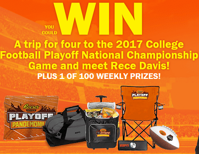 Reminder: You can Enter once a week for your chance to win the REESE’S Playoff Football Pick of the Week Sweepstakes! Ends February 7, 2016. Good Luck!