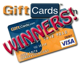 First we want to thank everyone that entered. Also a big thank you to GiftCards.com for sponsoring this giveaway. We have many more fun giveaways coming up, so keep checking back. 🙂 To the winners Be sure to check your emails with further instructions. You will need to respond to the email within 48 hours.