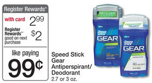 Now through February 28th Walgreens has have Speed Stick Deodorants on sale for $2.99. Plus you will get back a $2 Register Reward. There is a $2.00 off Speed Stick GEAR Deodorant or Body Spray Coupon that will make these FREE plus a $1.01 Money Maker!