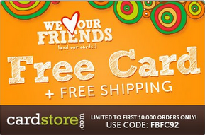 To get a FREE Custom Greeting Card From The Card Store create any card, then enter coupon code FBFC92 at checkout. Shipping is FREE! This is for the first 10,000 people!!!! Hurry this will go Fast!!