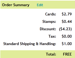 That code actually got me $5 off. Did have to pay for shipping. But I got two cards for only $0.58 before shipping. With shipping added in it was only $1.58 for two cards.