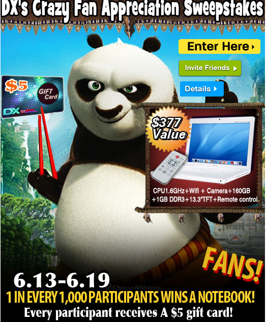 Get a FREE $5 DealExtreme Gift Card everyone who enters will get the gift card! You will receive your gift card after June 19, when the promo is over. This is DealExtremes website.