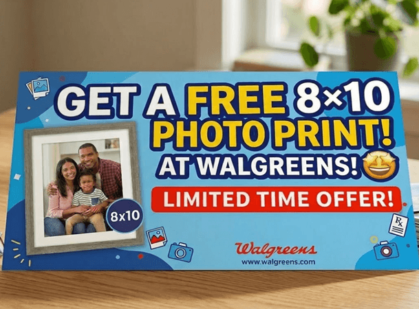 Through April 7th get a FREE 8×10 Photo Print at Walgreens simply upload your photo and add an 8×10 to your cart use code RAINYPRINT at checkout and then select FREE in-store pickup to make it 100% FREE. Limited to one free 8×10 single-image prints per household, per account. This offer may not work in the app.