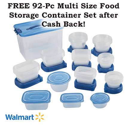 Get FREE 92-Pc Multi Size Food Storage Container Set from Walmart after Cash Back! Spend a total of $9.98 or more on a Mainstays 92PC Multi Size Food Storage Container Set via the custom TopCashback Offer Page and get $10.00 in cash back. These 46 containers are dishwasher-safe, freezer-safe, BPA-free, and microwaveable! Perfect for leftovers, meal-prep lunches, and more!