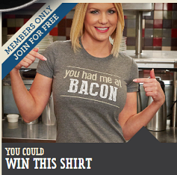 Enter once a month for a chance to win the FREE Bacon Club T-Shirt Giveaway! They are giving away 250 T-Shirts. Ends September 30, 2014. Good Luck!