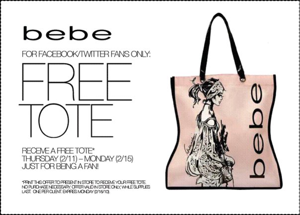 Get a FREE Designer Tote Bag at Bebe stores.