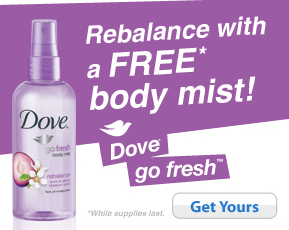 Get a FREE Dove Go Fresh Rebalance Body Mist Sample Hurry this will go so fast!!!