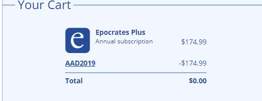 To Get FREE Epocrates 1 Year Plus Subscription ($175 Value) Click Buy Now and Register enter discount code AAD2019