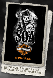 To get a FREE Harley Davidson Sons of Anarchy Sticker you have to enter the contest to get the free sticker. *This offer is still available in case you missed this.