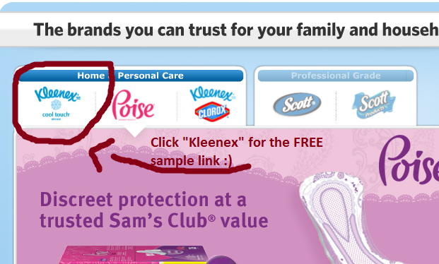 Get a FREE Kleenex Cool Touch Tissue Sample Click the “Kleenex“ tab at the top. You don’t need to Sam’s number to request the sample anymore. If you are having trouble finding the sample –click here for an image example.