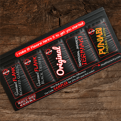 Get a FREE Matt-Hat Jerky Sample Pack! Click add to cart and use discount code: FREESHIP to make it free with free shipping.