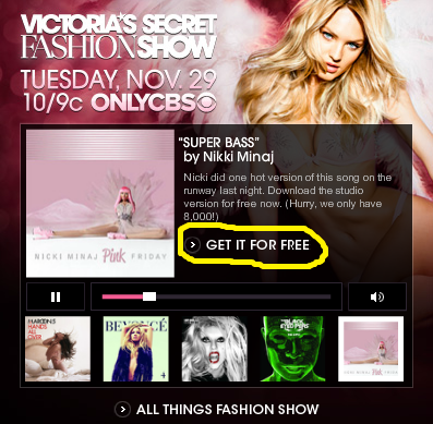 Get FREE MP3 Song Downloads From Victoria’s Secret For the First 8,000 fans only.