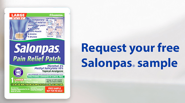 Get a FREE Salonpas Pain Relief Patch Sample! Complete the online form to receive one free sample of Salonpas® Pain Relief Patch Large 1ct.