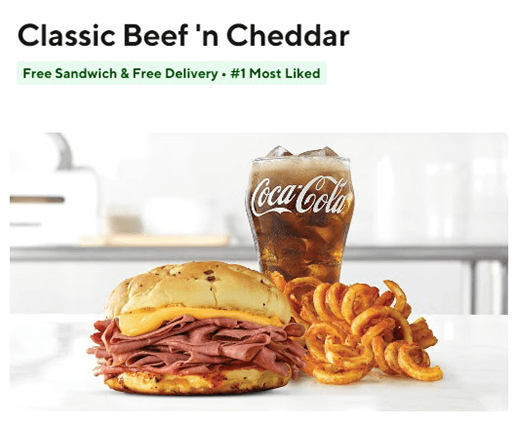 Arby’s is offering a FREE Sandwich with FREE Delivery in select areas. Enter your address. If you have a participating restaurant, choose any sandwich and it will show free at checkout — no code is needed. Valid at participating U.S. locations from 2/26/24 thru 3/10/24 while supplies last.