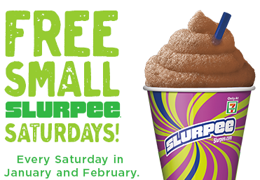 Reminder: Get a FREE Small Slurpee every Saturday in January and February at 7Eleven! when you scan your App. Digital coupon available for redemption in 7REWARDS members’ wallet from 12 A.M. TO 11:59 P.M. on Saturdays in February 2017!