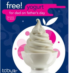 Get a FREE TCBY Yogurt For Dad’s on Fathers Day on June 17th. No coupon required, but be sure to call your local TCBY store to be sure they are participating. Click here for more details.