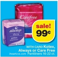 This week CVS has U by Kotex Liners for $0.99, plus there is a $1 off ANY U by Kotex Printable Coupon, making these FREE after coupon!