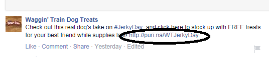 To get a FREE Waggin Train Chicken Jerky Tenders Dog Treats click the link under the video to get the form. In order to get the sample you need to click the link on Purina’s Facebook post. (Here is an image example of where you need to click to get the offer).