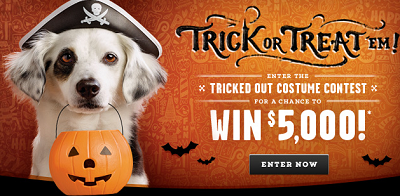 To enter weekly for a chance to win the Milk-Bone Trick or Treat Halloween Prize Pack Sweepstakes you have to submit a eligible photo of your dog dressed up for Halloween. Ends November 2, 2014. Good Luck! They are giving away over 1,000 prizes!