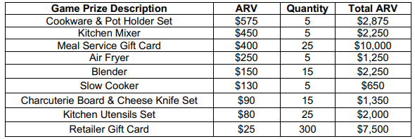 Sweepstakes Prize (1): The “Sweepstakes Prize” is $50,000, awarded as a check made payable to the Sweepstake Prize winner. Only one (1) Sweepstakes Prize will be awarded in this Promotion. If, due to a technical, production, human or other error, more than one (1) entrant receives a Sweepstakes Prize-winning notification, the one (1) intended Sweepstakes Prize will be awarded in a random drawing from among all recipients of such notifications.