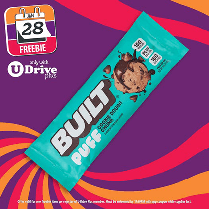 U-Drive Plus members can get FREE Built Puff Cookie Dough Chunk Protein Bar at UDF store using the app coupon available through the rewards program You’ll need to be enrolled in U-Drive Plus (free to join) to redeem the coupon in the app on 1/28/26 by 11:59PM. [United Dairy Farmers Locations] … [Read more...] about FREE Built Puff Cookie Dough Chunk Protein Bar at UDF