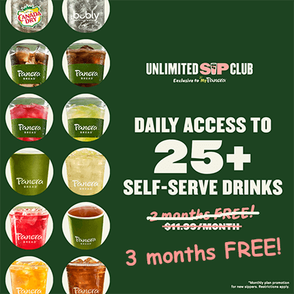 Panera Unlimited Sip Club has decided to bring the Free Trial back! Get FREE Drinks for 3 Months when they join the Unlimited Sip Club when you apply promo code 3MOSIPS on the subscription page. After entering your credit card information, "click on the "Add a promo code" link. Enter the 3MOSIPS promo code before hitting the "Start my … [Read more...] about Panera Unlimited Sip Club: FREE Drinks for 3 Months