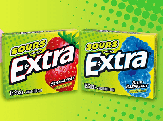 One Hundred (100) Secondary Prizes are available. Each Secondary Prize consists of one (1) pack of SOURS by EXTRA® Blue Raspberry gum and one (1) pack of SOURS by EXTRA® Strawberry gum. The ARV of each Secondary Prize is $3.98.
